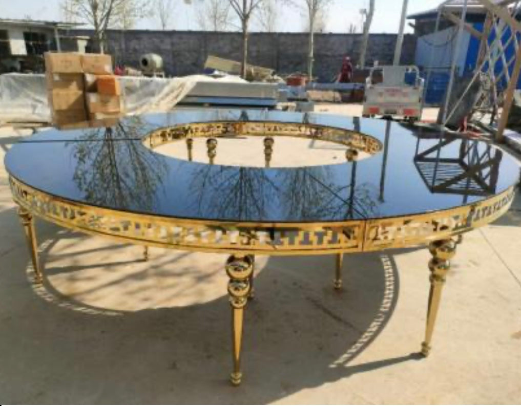 Serpentine Table Set with Glass Top and Shiny Gold Base
